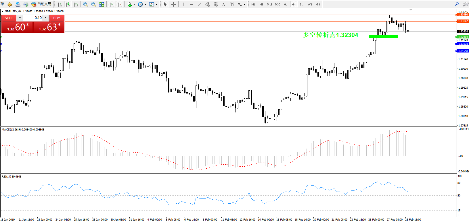 交易策略:1.32304上方看涨,目标1.33142、1.33494