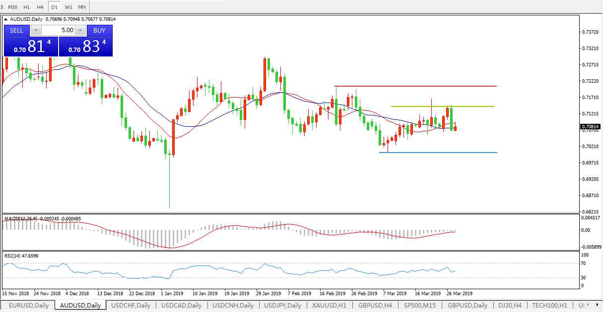 交易策略:在0.7140之下,看跌,目标价位为0.6990,然后为0.6940