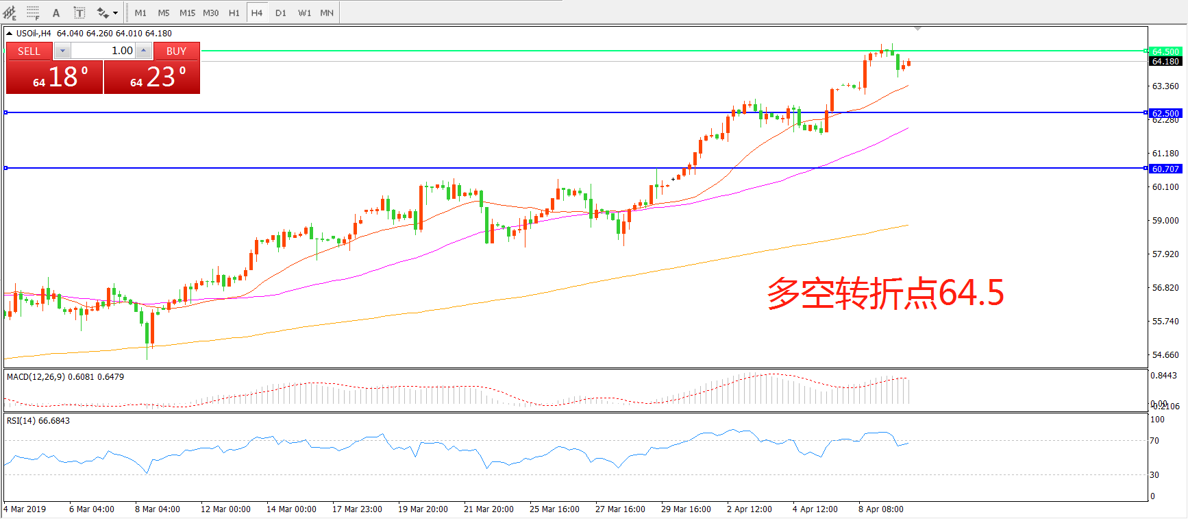 交易策略:在64.50之上看涨,目标66.50 70.00