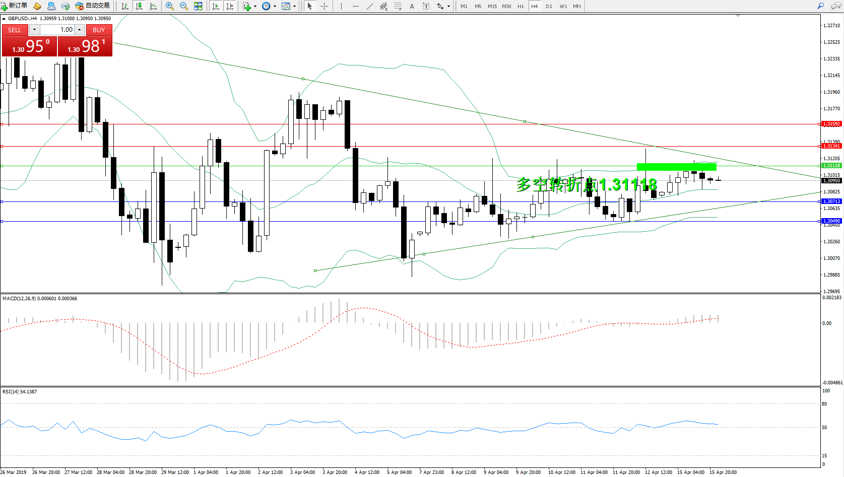 交易策略:1.31118下方看跌,目标1.30713、1.30490