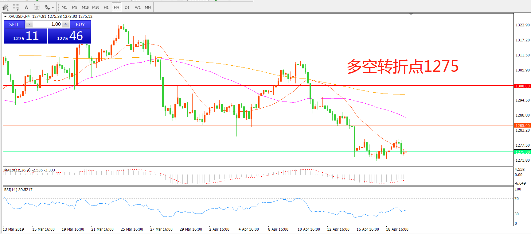 多空转折点:1275.00
