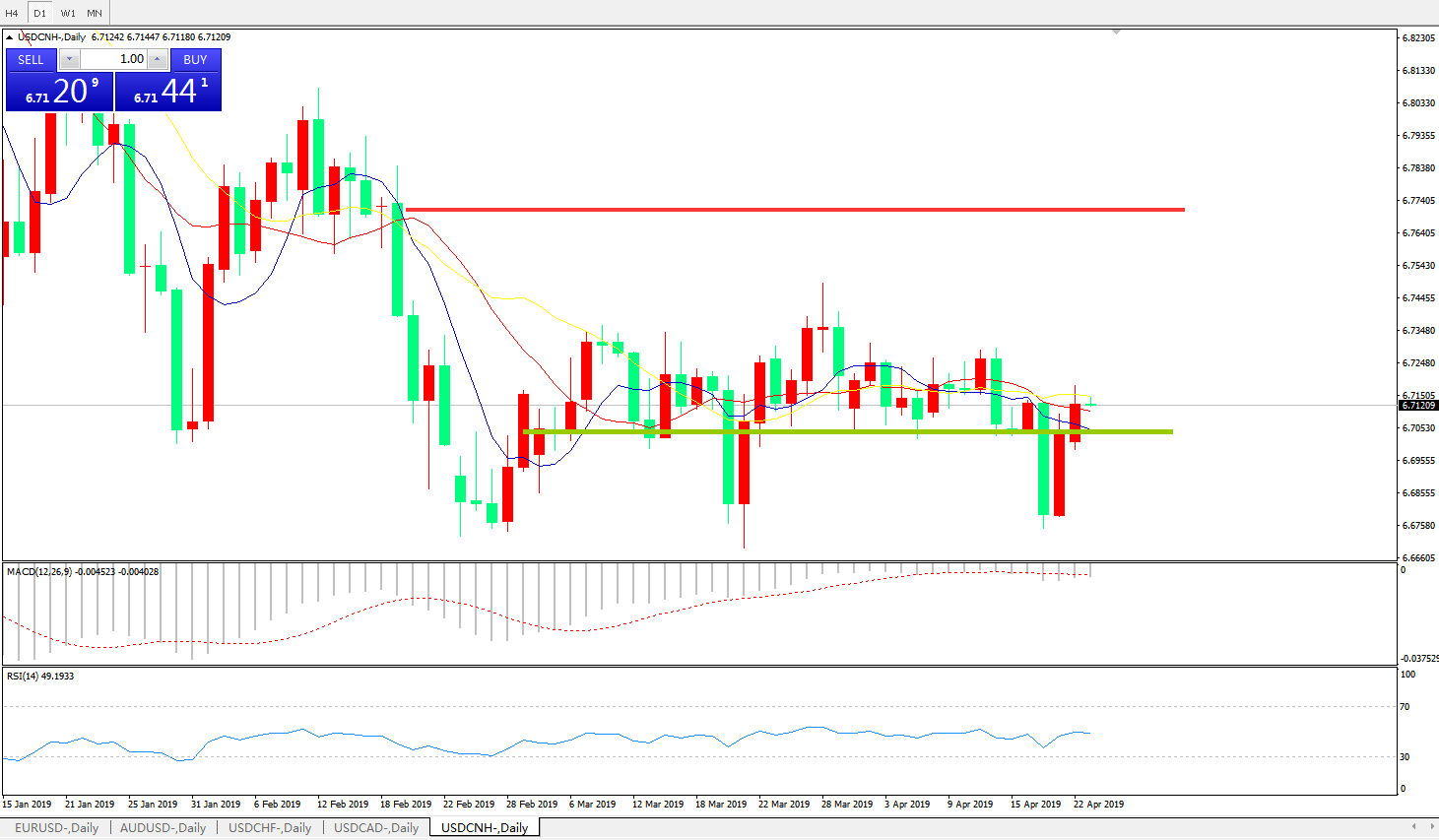 交易策略6.6990之上,看涨,目标价位为6.7845,然后为6.8185