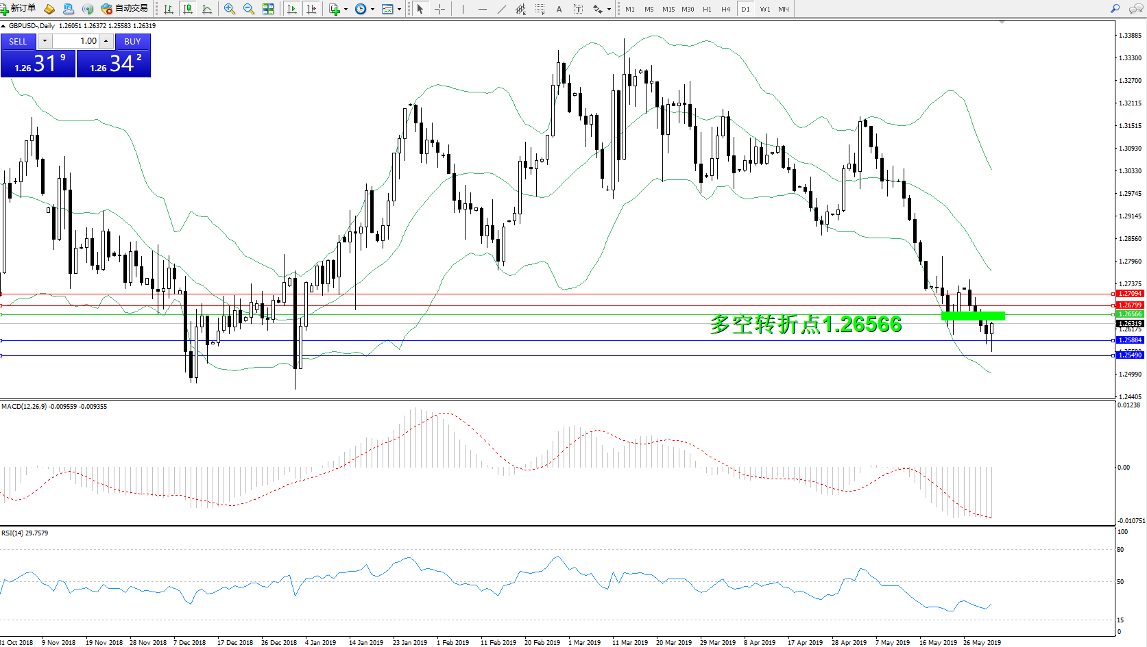 交易策略:1.26566下方看跌,目标1.25884、1.25490