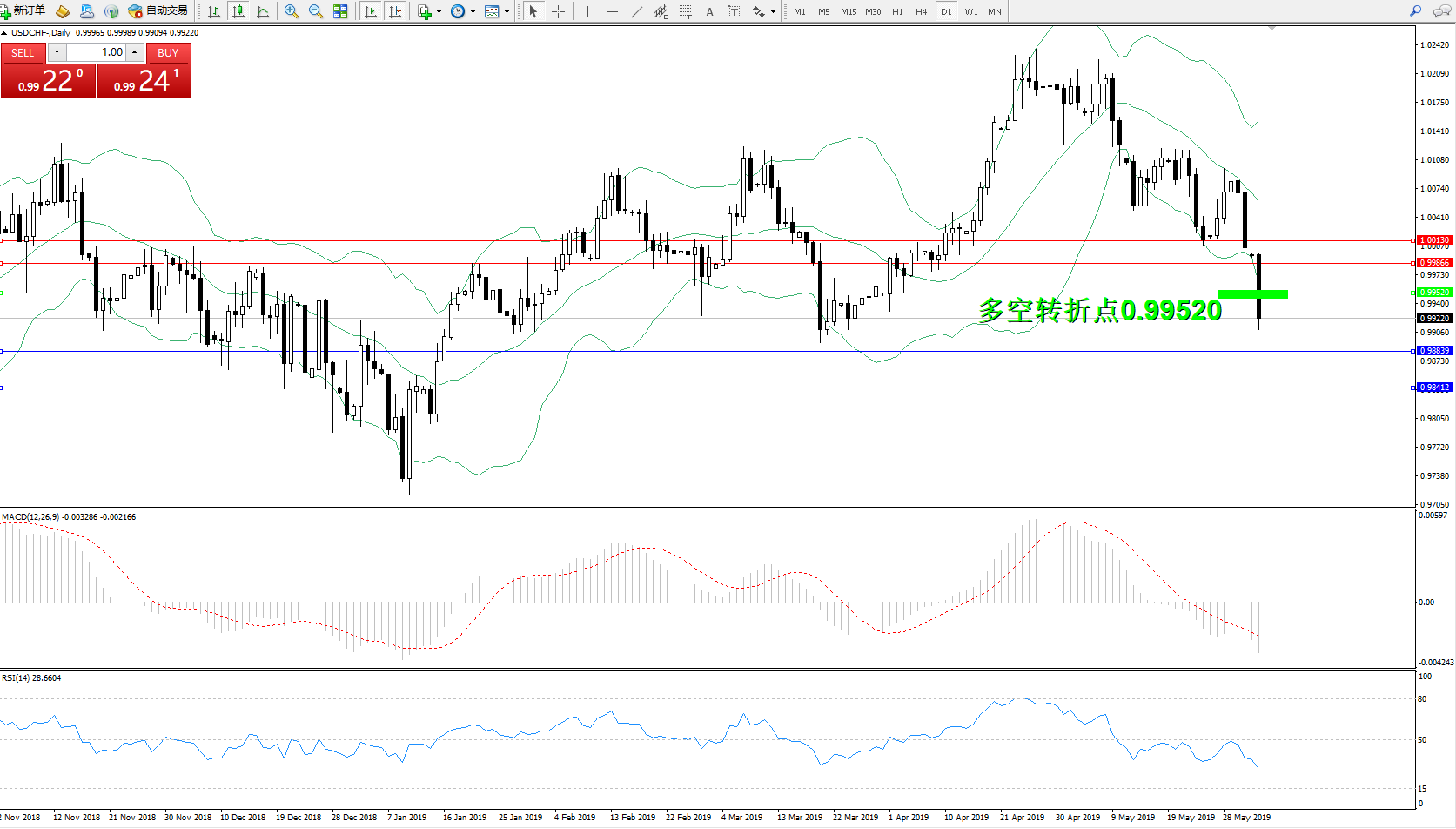 备选策略:0.99520上方看涨,目标0.99866、1.00130