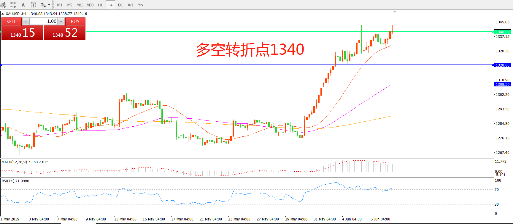 多空转折点:1340.00