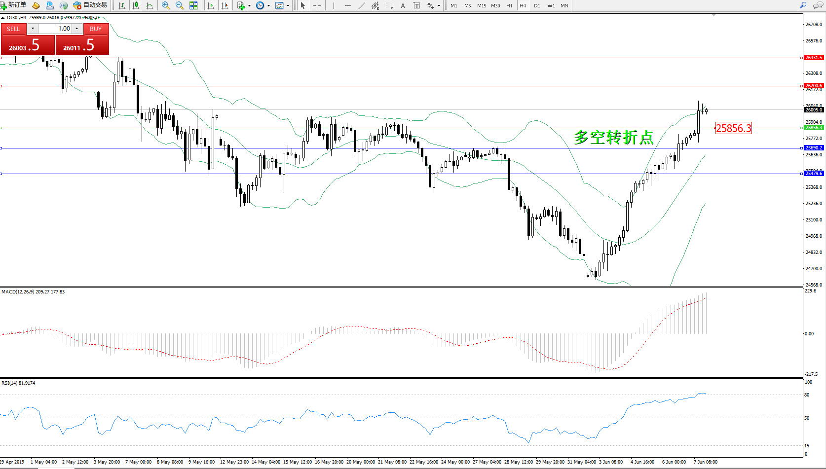 交易策略:25856上方看涨,目标26200、26431