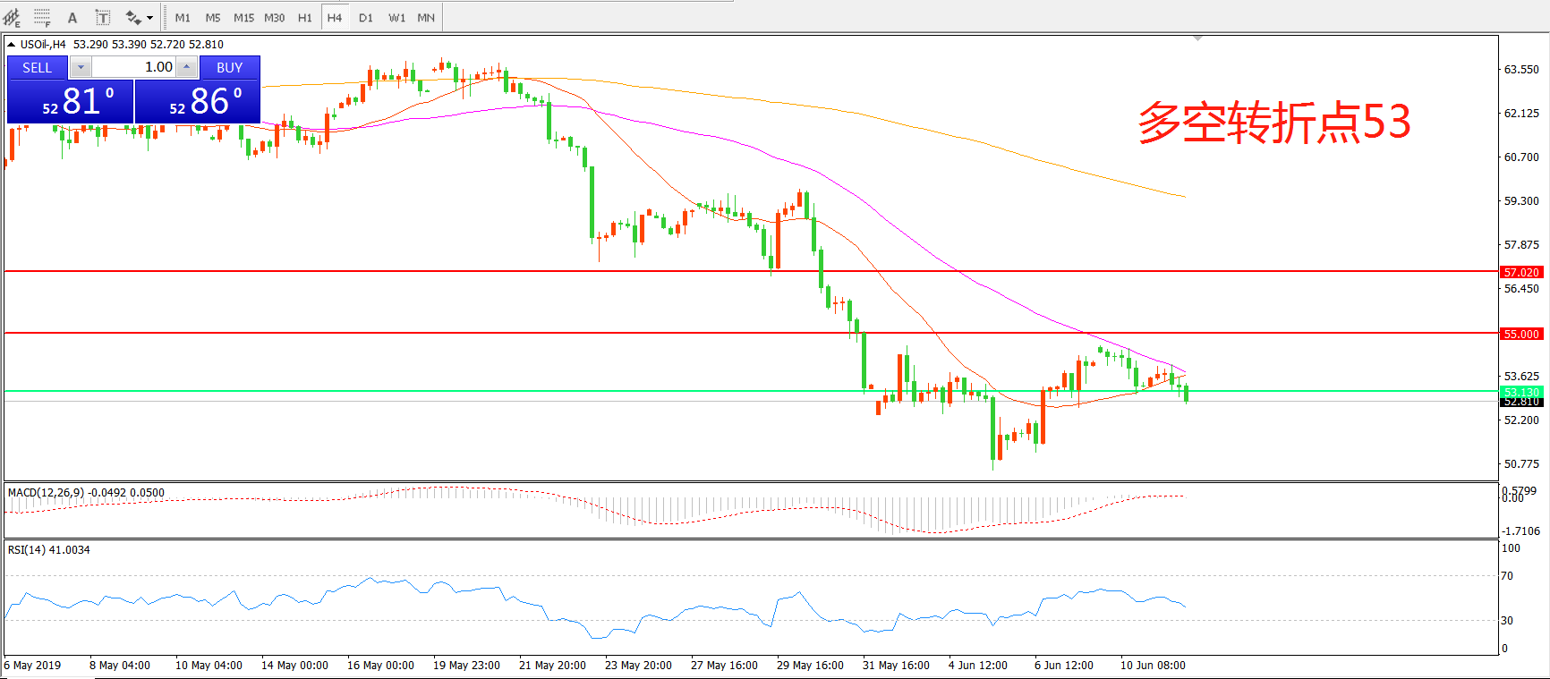 多空转折点:53.00