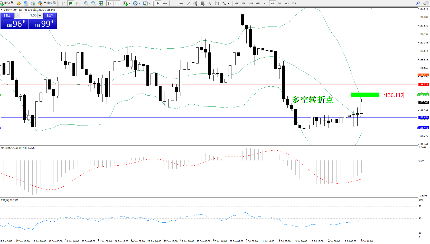 交易策略:136.112下方看跌,目标135.651、135.441