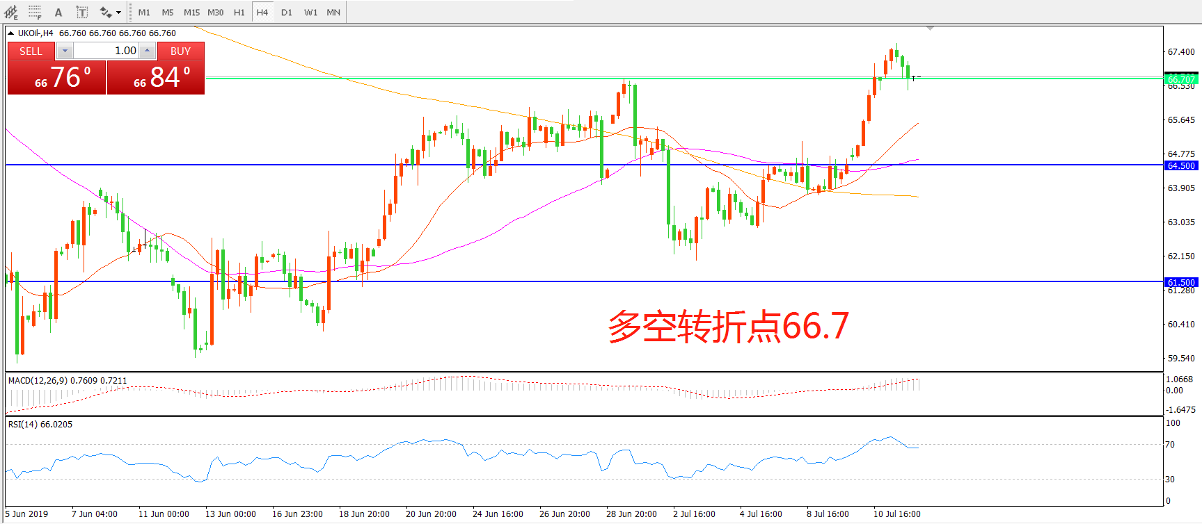 交易策略:在66.70之上看涨,目标70.00 73.00
