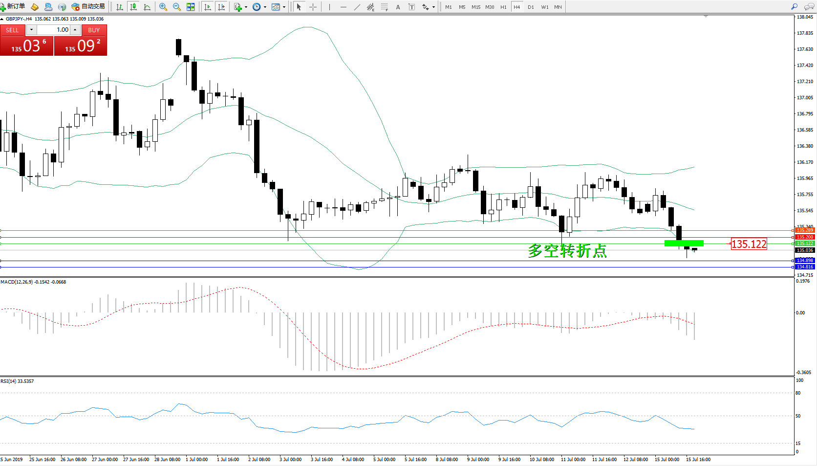 交易策略:135.122下方看跌,目标134.898、134.816
