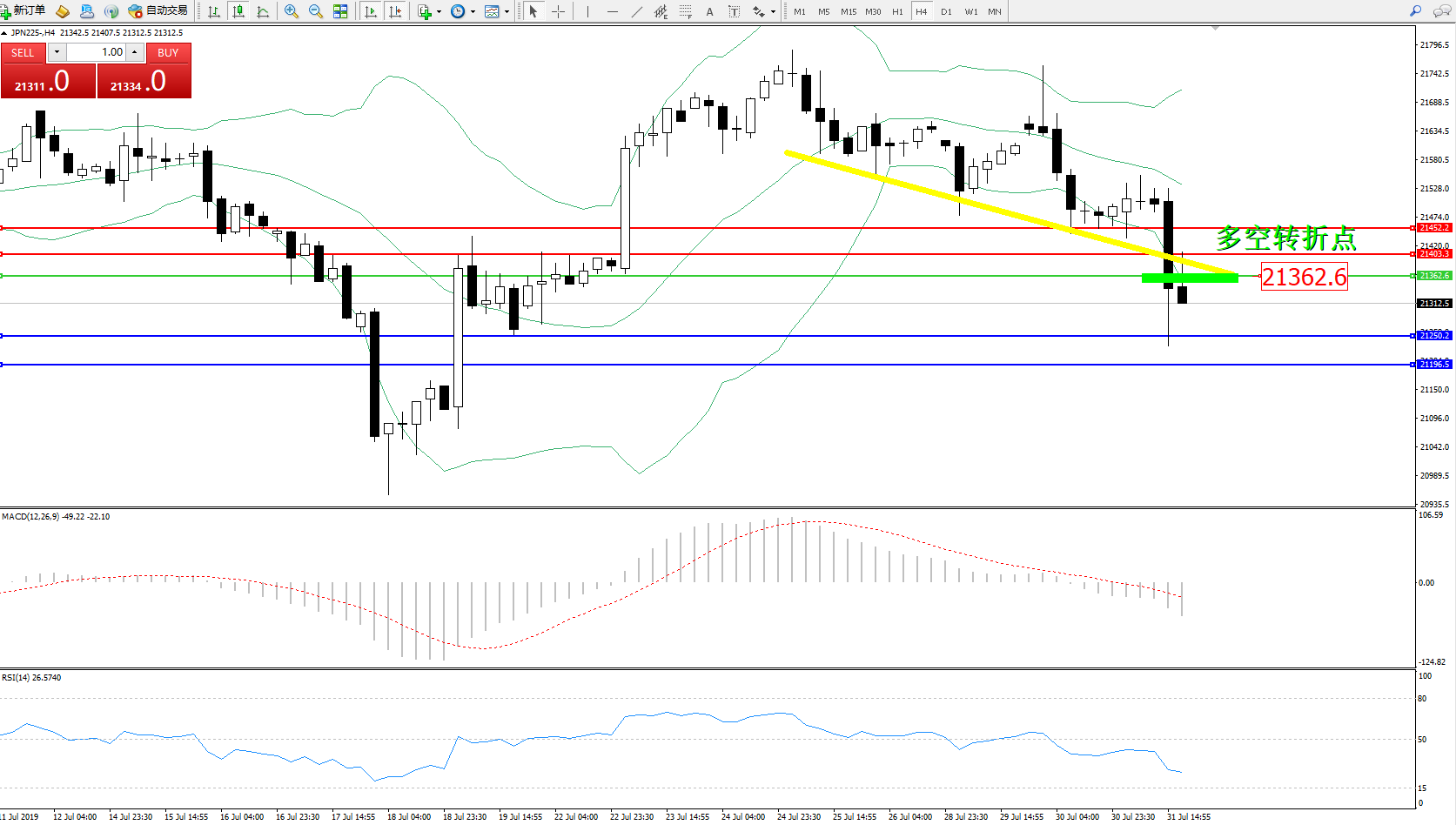 交易策略:21362下方看跌,目标21250、21196