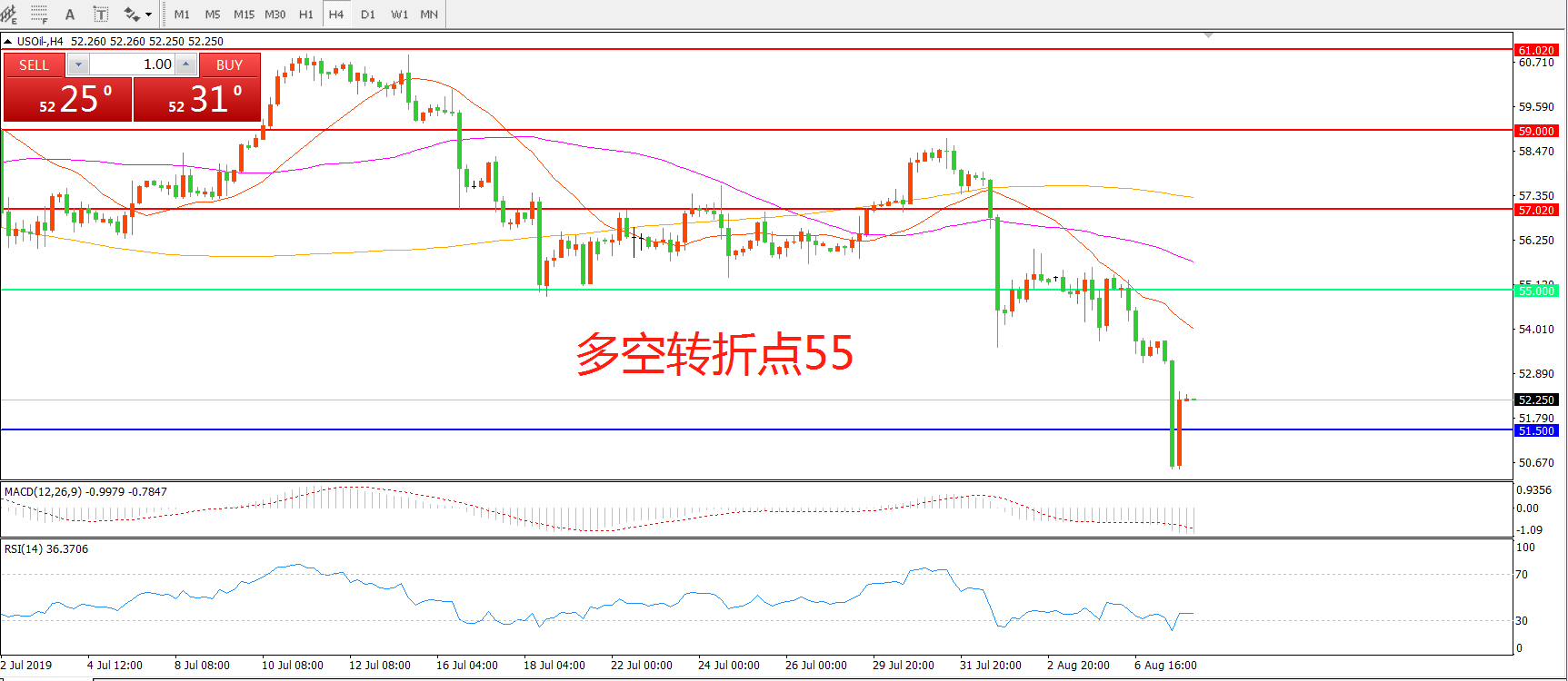 交易策略:在55.00之下看跌,目标51.50 49.50