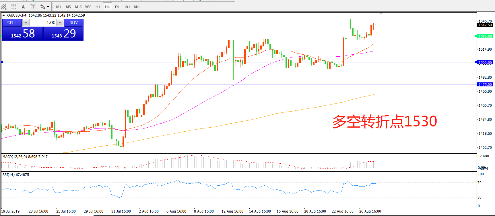 多空转折点:1530.00