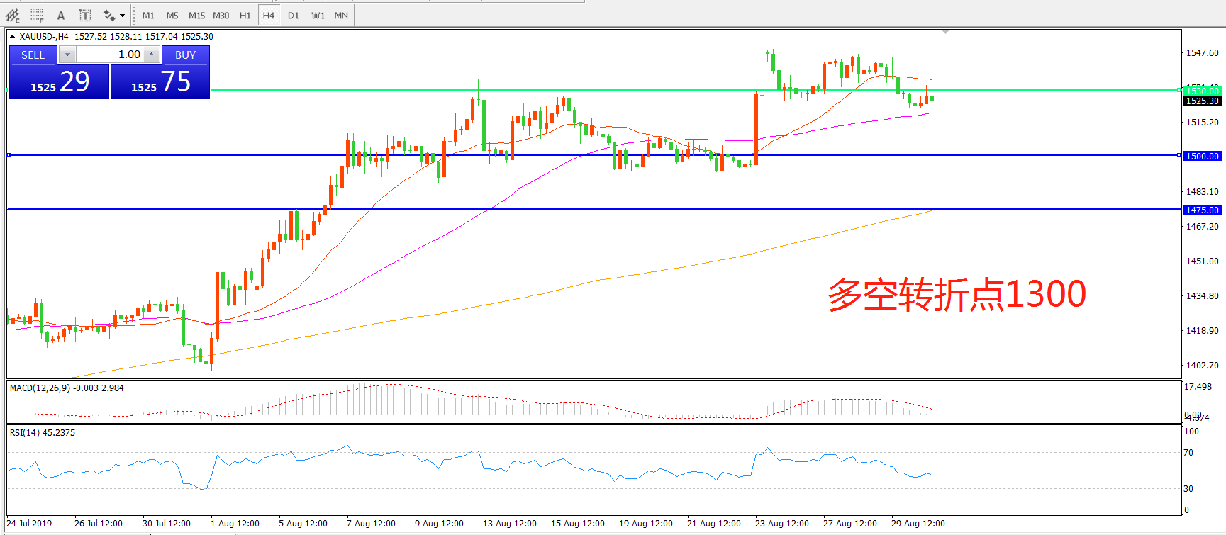 多空转折点:1530.00