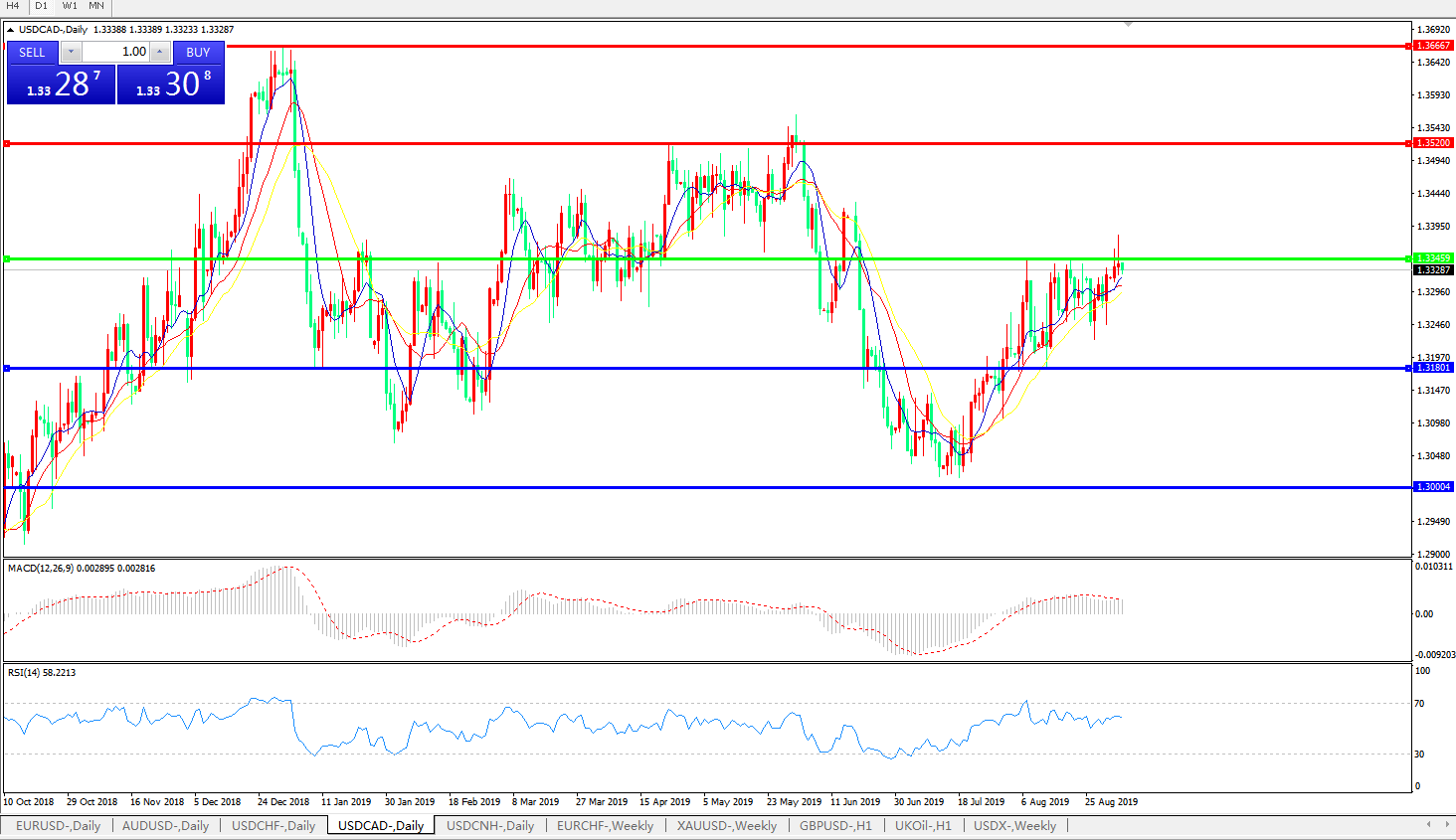 交易策略:在1.3345之下,看跌,目标价位为1.3180,然后为1.3000。