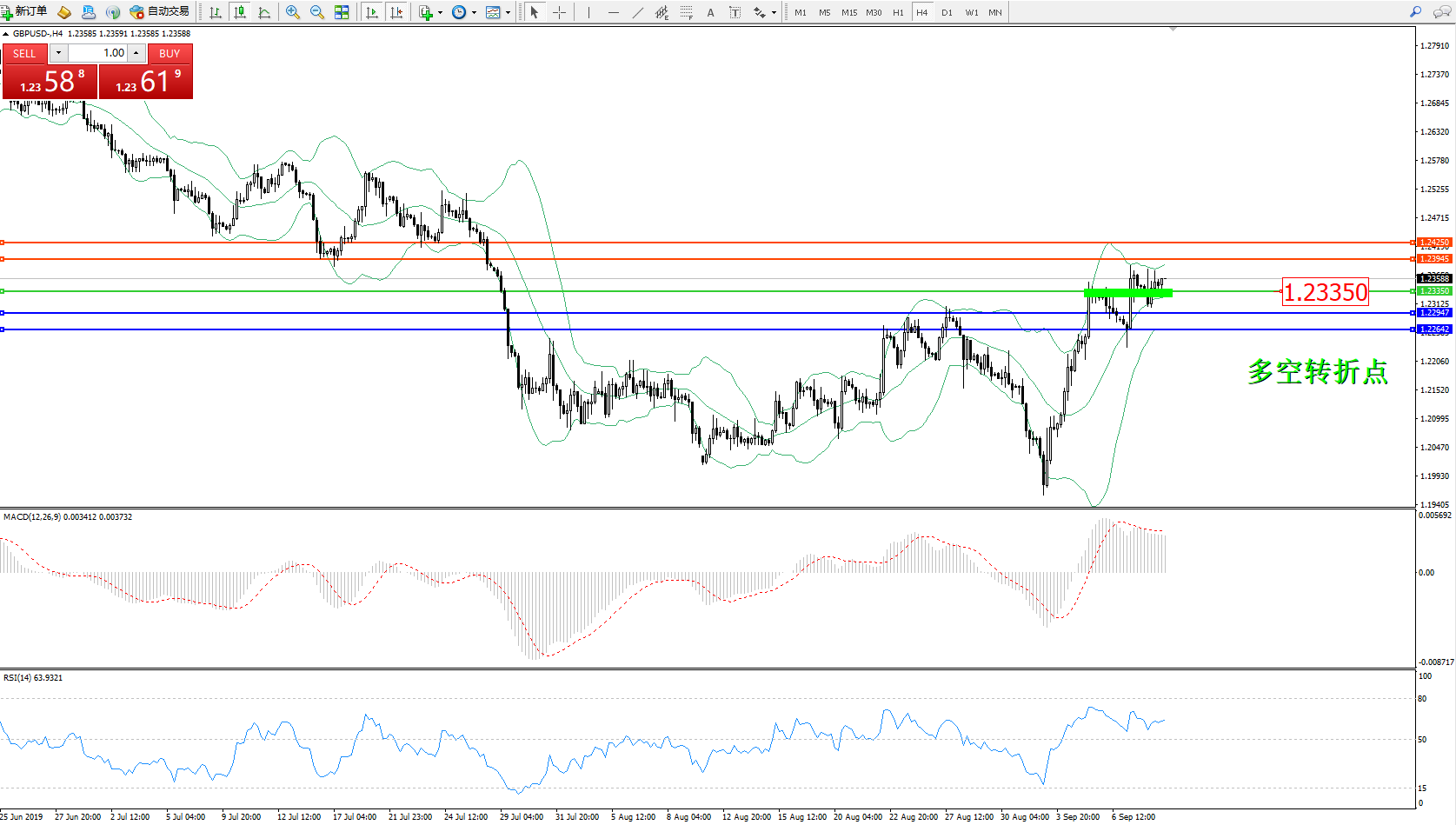 交易策略:1.23350上方看涨,目标1.23945、1.24250