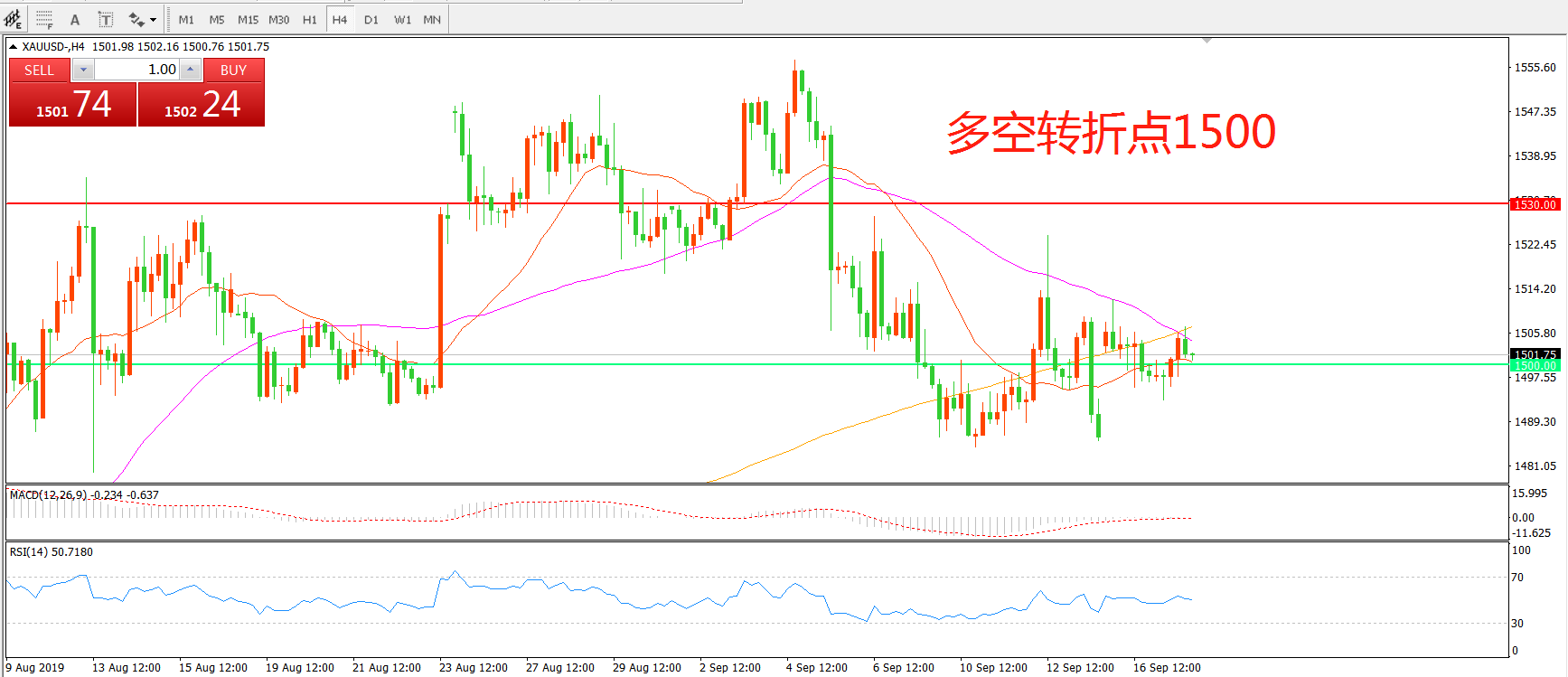 多空转折点:1500.00