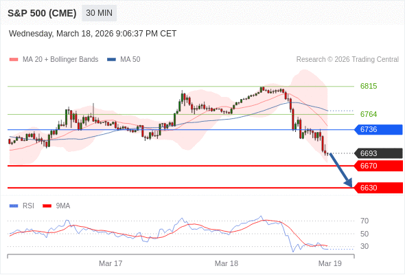 在 6736 之下,看跌,目标价位为 6670 ,然后为 6630 。