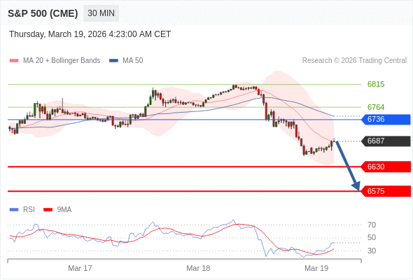 在 6736 之下,看跌,目标价位为 6630 ,然后为 6575 。