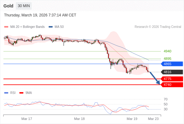 交易策略: 在 4865 之下,看跌,目标价位为 4775 ,然后为 4740 。