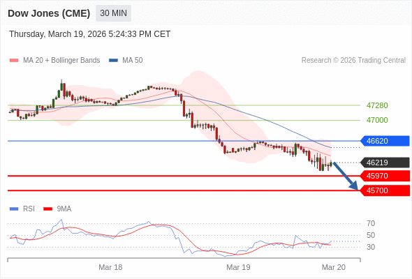 在 46620 之下,看跌,目标价位为 45970 ,然后为 45700 。