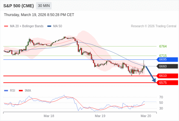 在 6695 之下,看跌,目标价位为 6610 ,然后为 6575 。