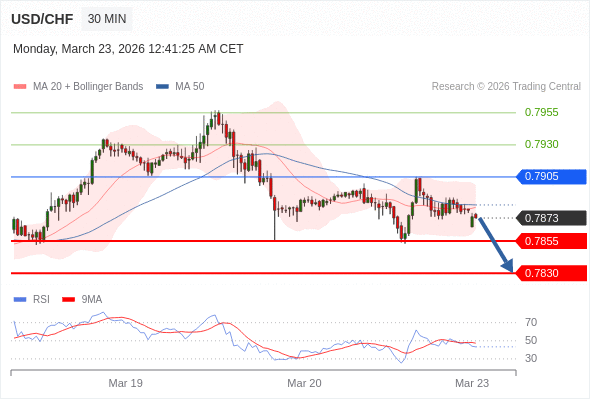 在 0.7905 之下,看跌,目标价位为 0.7855 ,然后为 0.7830 。