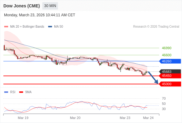在 46260 之下,看跌,目标价位为 45450 ,然后为 45000 。