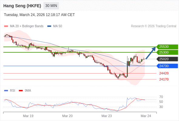 在 24730 之上,看涨,目标价位为 25300 ,然后为 25530 。