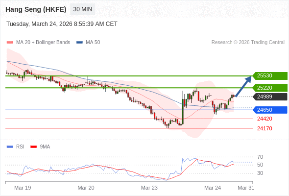 在 24650 之上,看涨,目标价位为 25220 ,然后为 25530 。