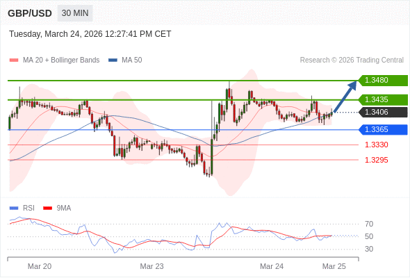 在 1.3365 之上,看涨,目标价位为 1.3435 ,然后为 1.3480 。