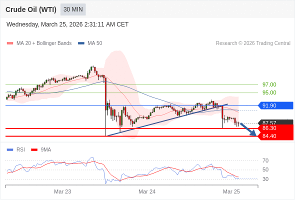 交易策略: 在 91.90 之下,看跌,目标价位为 86.30 ,然后为 84.40 。