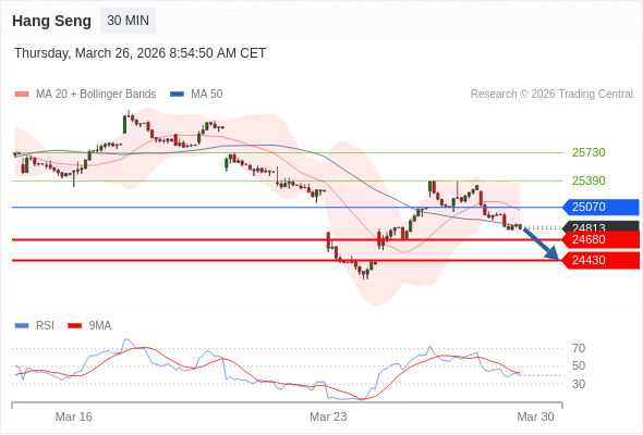 在 25070 之下,看跌,目标价位为 24680 ,然后为 24430 。