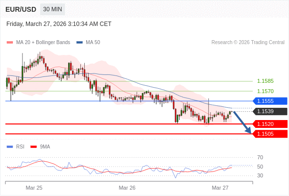交易策略: 在 1.1555 之下,看跌,目标价位为 1.1520 ,然后为 1.1505 。
