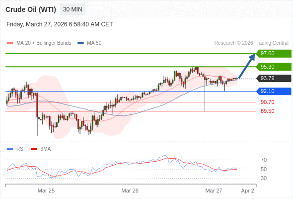 在 92.10 之上,看涨,目标价位为 95.30 ,然后为 97.00 。