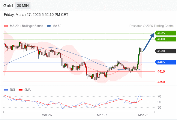 交易策略: 在 4465 之上,看涨,目标价位为 4600 ,然后为 4635 。
