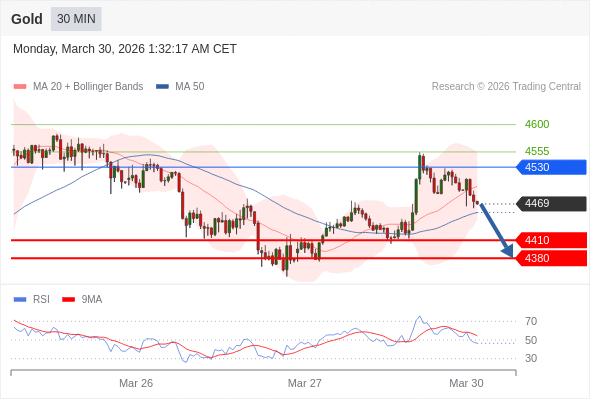 在 4530 之下,看跌,目标价位为 4410 ,然后为 4380 。