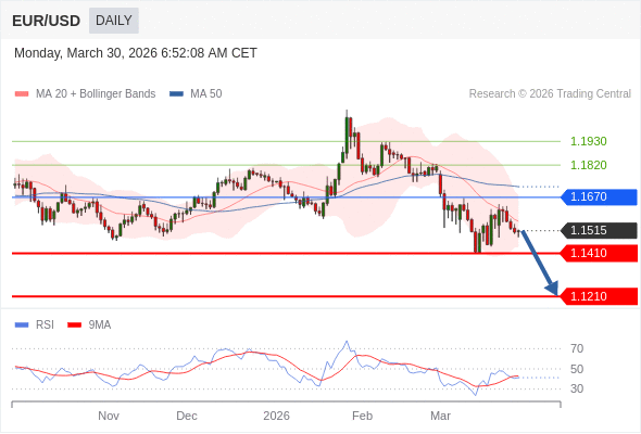 在 1.1670 之下,看跌,目标价位为 1.1410 ,然后为 1.1210 。