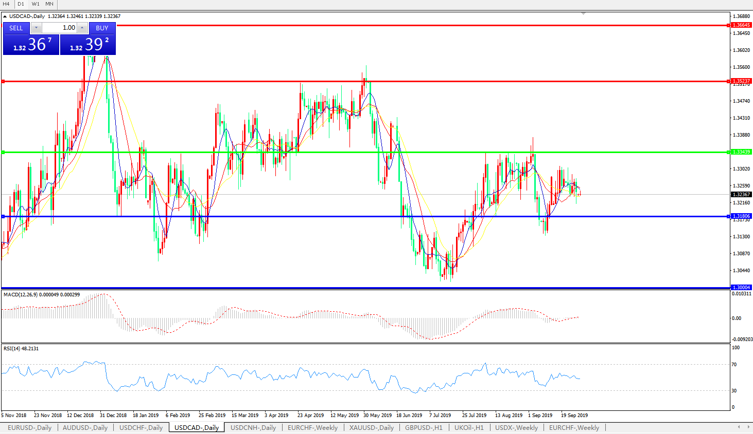 美元兑加元USDCAD    日线