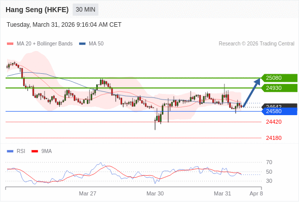 在 24580 之上,看涨,目标价位为 24930 ,然后为 25080 。