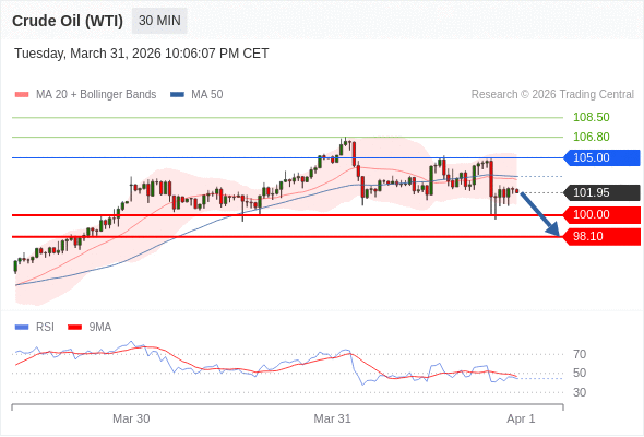在 105.00 之下,看跌,目标价位为 100.00 ,然后为 98.10 。