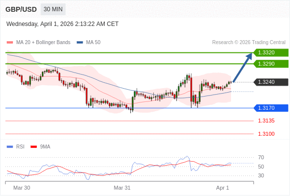在 1.3170 之上,看涨,目标价位为 1.3290 ,然后为 1.3320 。
