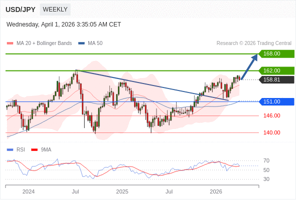 交易策略: 在 151.00 之上,看涨,目标价位为 162.00 ,然后为 168.00 。