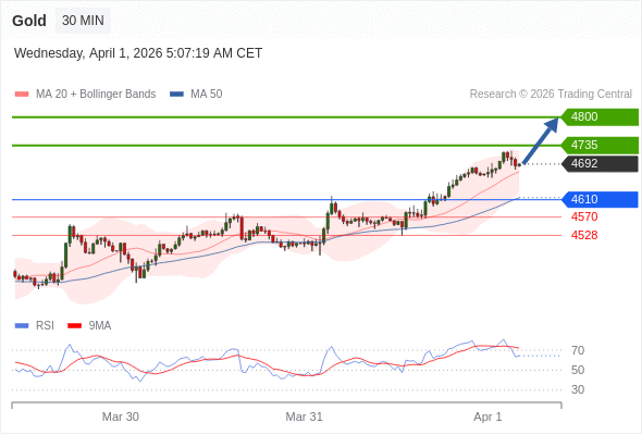 在 4610 之上,看涨,目标价位为 4735 ,然后为 4800 。