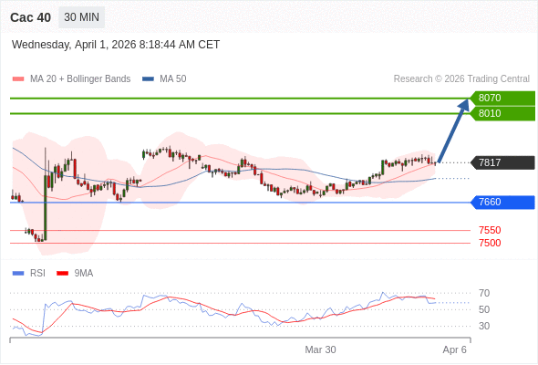 Cac 40 当日内: 持续上升。