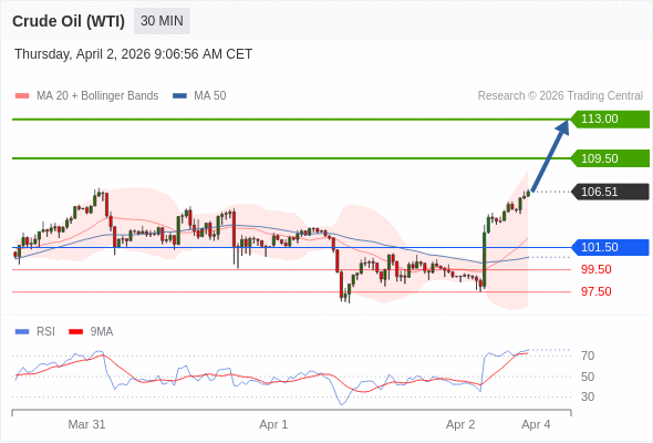 交易策略: 在 101.50 之上,看涨,目标价位为 109.50 ,然后为 113.00 。