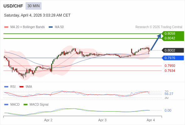 交易策略: 看涨,当 0.7976 为支撑位。