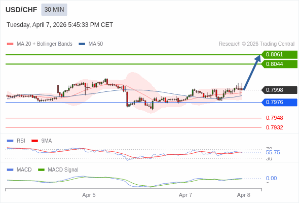 交易策略: 看涨,当 0.7976 为支撑位。