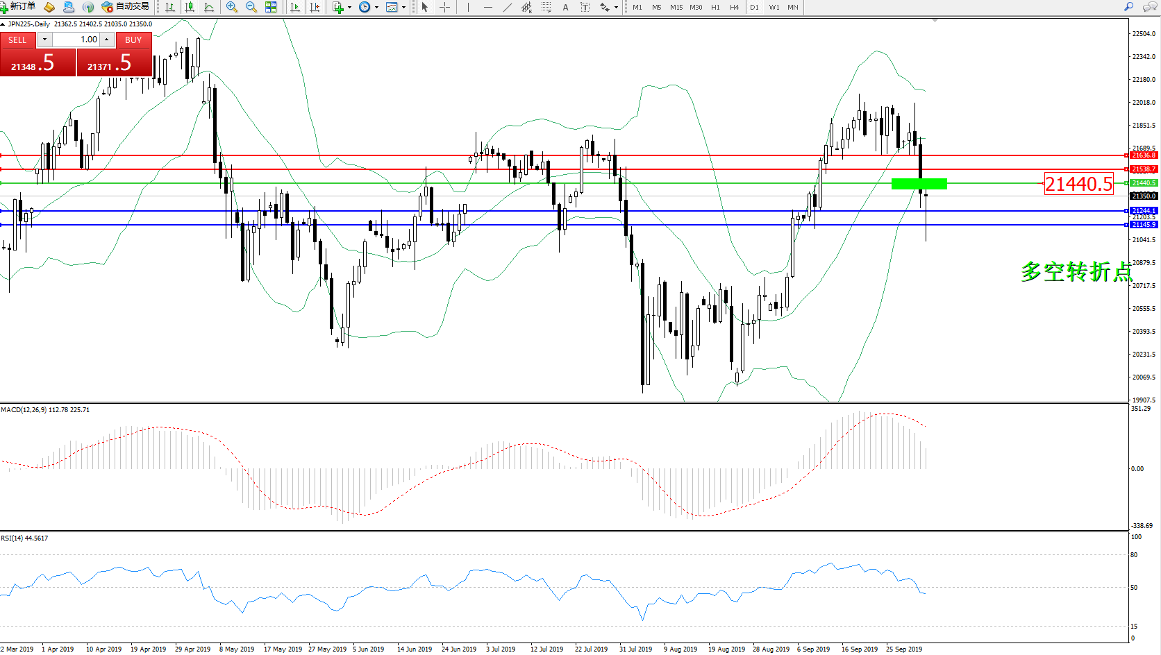 日经225指数103日(周四)收盘下跌437.11点,跌幅2.01%,报21341.50点。日本央行布委员布野幸利称:鉴于物价和通胀预期上涨乏力,必须在较长时间内维持有效的低利率;如果预见到物价目标面临的风险,日本央行必须全力避免这些风险变为现实。风险方面,布野幸利认为海外经济风险高企,全球经济面临的下行风险正在增加,并且日本央行前所未有地需要加强对物价增长动能所面临风险的监控。货币政策方面,布野幸利认为宽松措施有多重可能性,比如降息、加大资产购买、扩张货币基础等等。