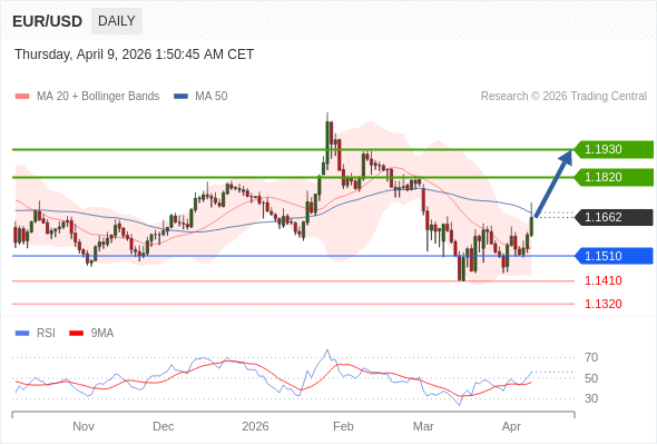 在 1.1510 之上,看涨,目标价位为 1.1820 ,然后为 1.1930 。